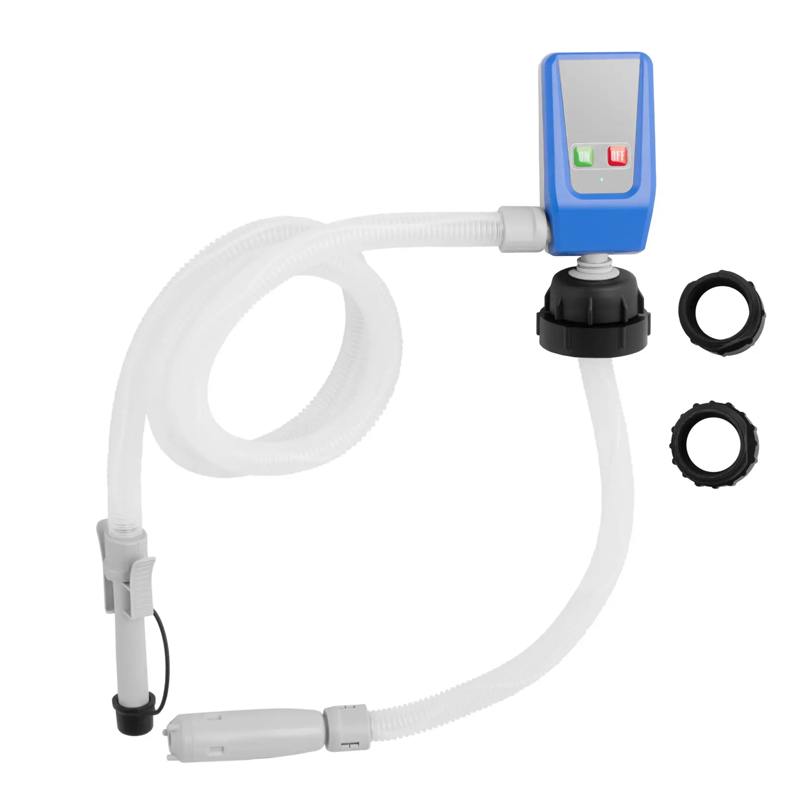 De slangen zijn gemaakt van duurzaam polyethyleen, dat bestand is tegen alle weersomstandigheden en ideaal is voor het overbrengen van vloeistoffen. Voor de werking worden vier AA-batterijen (niet meegeleverd) gebruikt, die worden beschermd door een waterdicht klepje in het apparaat. In geval van nood zijn twee AA-batterijen ook voldoende. Of je kunt de DC 12 V aansluiting gebruiken om het apparaat aan te sluiten op een autoaccu of een sigarettenaansteker (kabel niet meegeleverd). Opmerking: De pomp heeft een levensduur van 120 uur en is niet geschikt voor continu gebruik. Gebruik de afzuigpomp niet met verdunners, oplosmiddelen, hete vloeistoffen, aceton, benzeen of cresol.