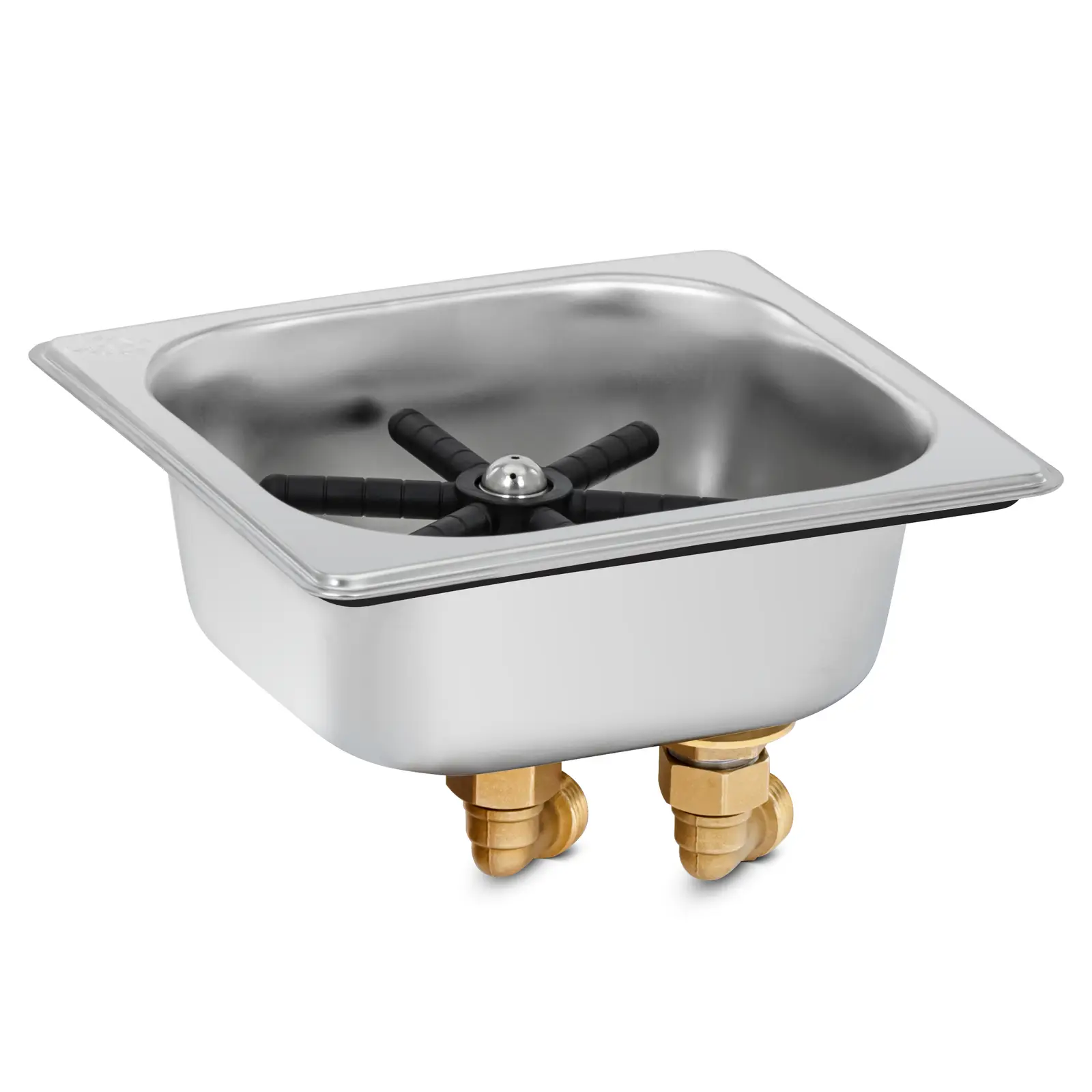 Voor de glazenwasmachine heeft u geen elektriciteit nodig. Het apparaat werkt met water onder druk en werkt net zo goed met koud water als met warm water. De krachtige waterstraal verwijdert op betrouwbare wijze stof, vuil, voedselresten en andere verontreinigingen. Plaats het glas met lichte druk op de glazen spoelbak. Plaats het glas op de glazenspoelmachine en oefen lichte druk uit. Een paar seconden zijn voldoende om het vuil van glazen en kopjes te verwijderen en klaar te maken voor uw volgende gasten. Het apparaat is geschikt voor vaten met een diameter tussen 2 en 11 cm en biedt een groot steunvlak met groeven die voor extra steun zorgen.