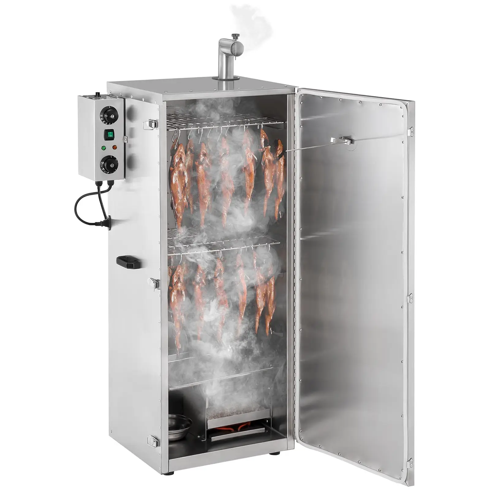 Vers gerookte vis is een absolute delicatesse en ook vlees- en worstproducten behouden bij het roken wekenlang hun kenmerkende smaak. Het ingebouwde verwarmingselement met een vermogen van 1.000 watt zorgt ervoor dat de Royal Catering rokers variabel inzetbaar zijn voor warm en heet roken.