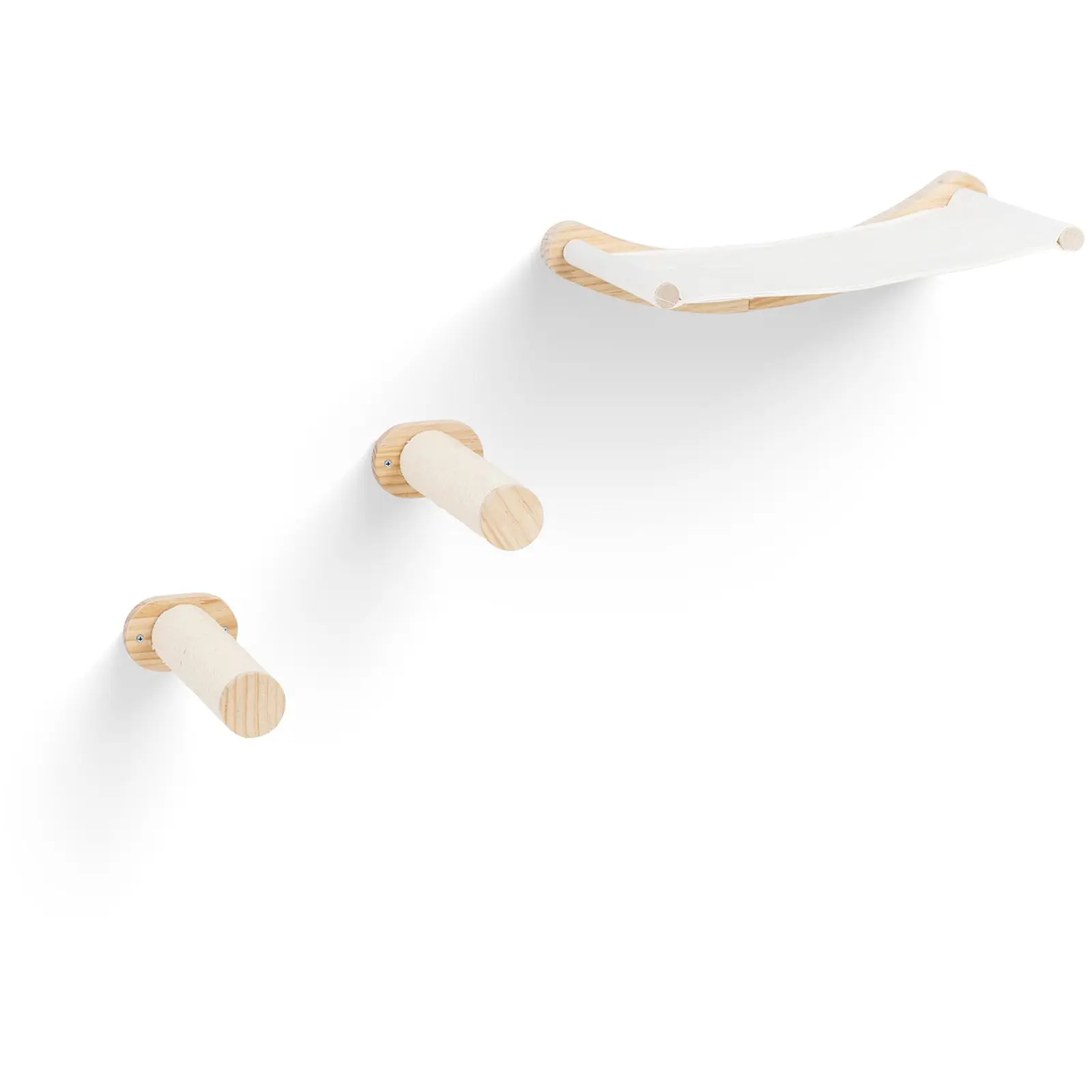 Is je flat klein? Benut dan de verticale ruimte met het kattenmuurpark en vergroot de bewegingsvrijheid van je geliefde viervoeters. De treden zijn gemaakt van plastic balken omwikkeld met sisal. Het stevige sisal aan de bovenkant voorkomt dat de pootjes wegglijden, zodat je katten veilig van trede naar trede kunnen springen. De wandhangmat meet in totaal 50 x 31,5 x 11,5 cm en nodigt uit tot ontspannen en snoezelen dankzij het zachte oppervlak.